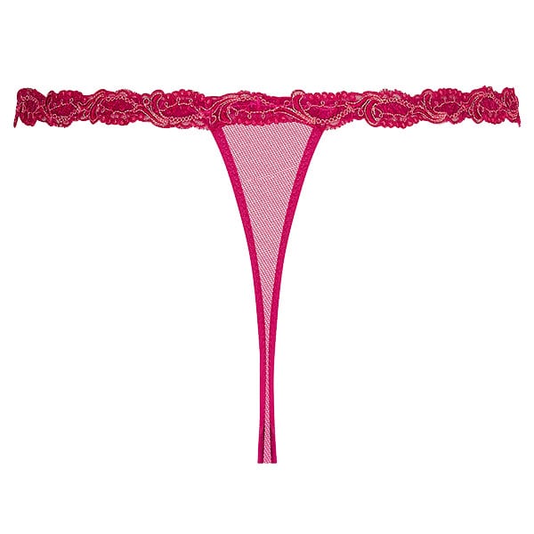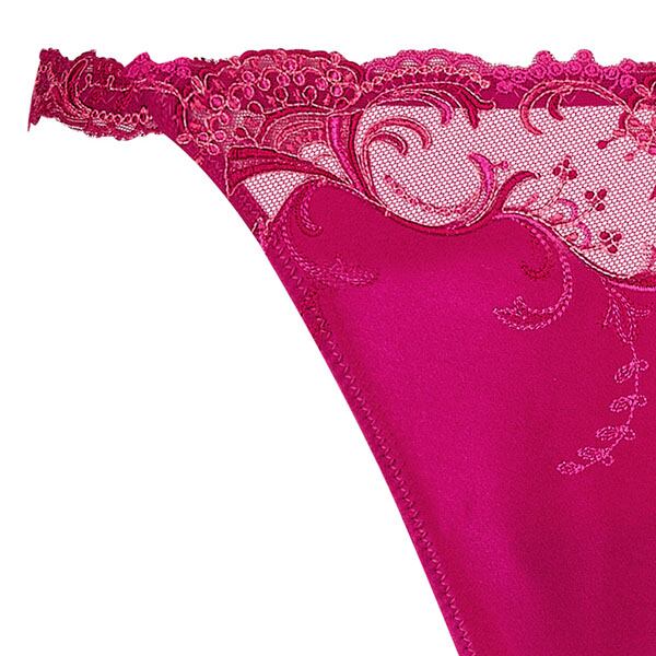 セクシーなGストリング。シルクサテン地と、モチーフの際立つチュール地の組み合わせ。サイドはレースで飾られゴージャス。