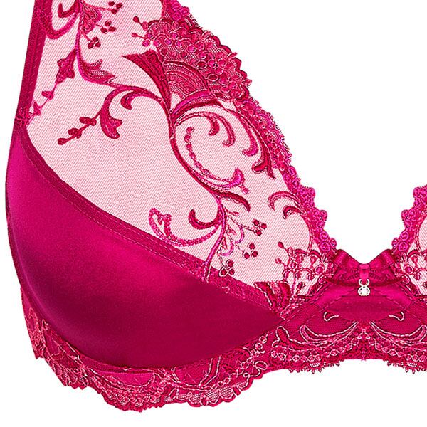 ワイヤー入りのハーフカップブラ。深いV字のデコルテがセクシーです。画像はBカップ。