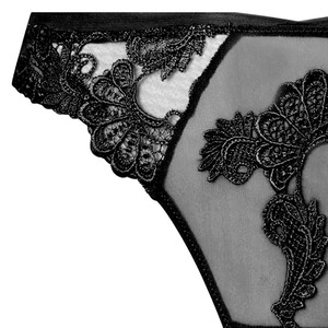 タンガ。バックは大きく切れ上がりヒップラインがひびきにくい。中央にはギピュールレースのモチーフ。大変美しい透け感です。