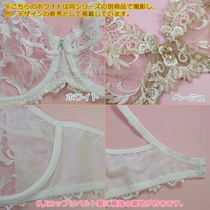 ワイヤー入りのフルカップブラ。ナチュラルでバストをしっかり包む安心の着け心地。繊細なレースに、モチーフが際立つカップ。シンプルな肩紐にレースモチーフの飾り。中央にはスワロフスキー。画像はBカップ。D,Eカップは補強のためデザインが異なります。