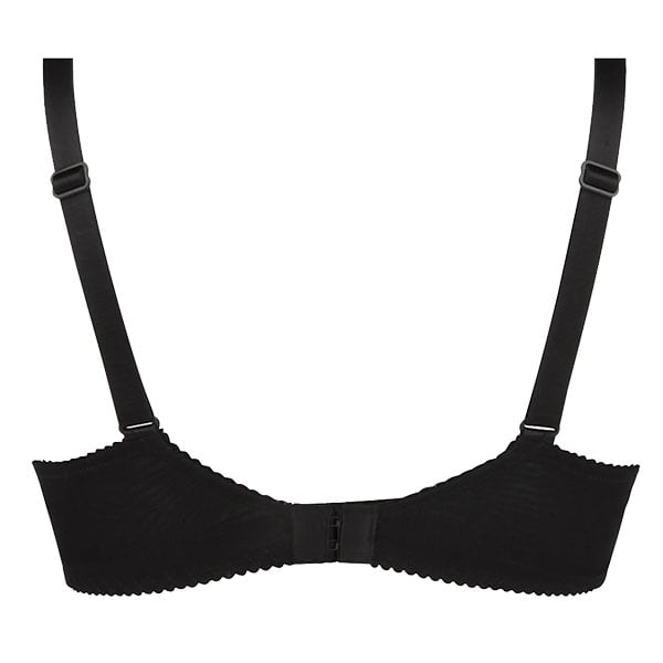 ワイヤー入りパッドなしブラ。大きいサイズでエレガントなブラをお探しの方におすすめ。美しいレースで華やかにバストを包み込みます。カップは3つの補強部分で作られ、幅広の肩紐で安定感があります。中央にはスワロフスキー。