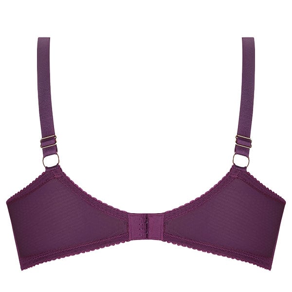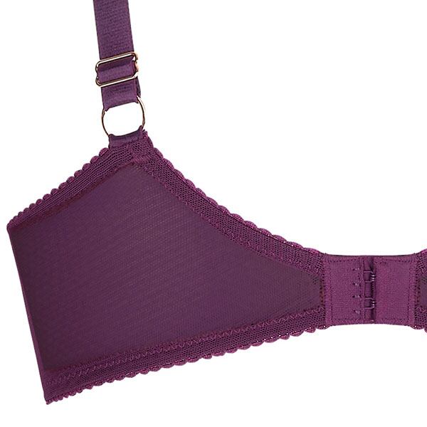ワイヤー入りのパッドなしブラジャー。3つの部分を合わせたカップ。ベルトは補強のメッシュ裏地付き。画像はDカップ。