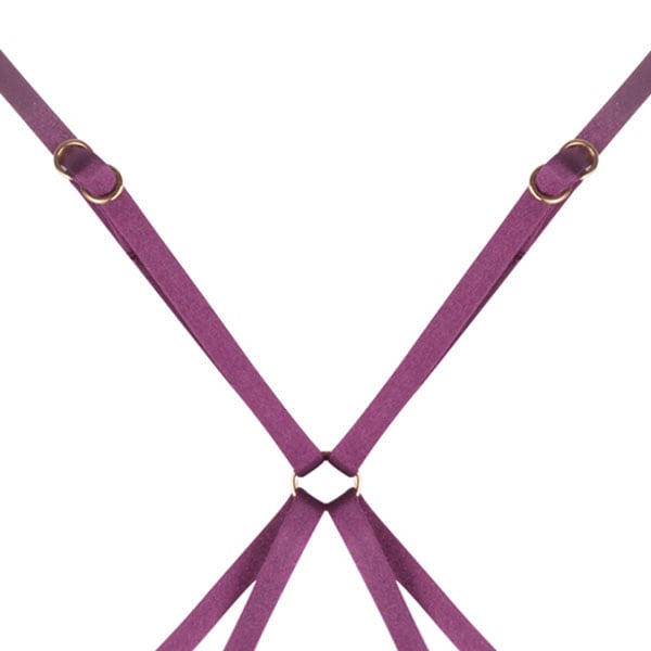 赤い果実の魅力にインスパイアされた鮮やかで明るく深みのある発色が、肌を優しく輝かせ質感に洗練された雰囲気をプラスします。大きなハイビスカスのモチーフが透明感のあるレースの上に官能的に配置され、優雅に彩ります。