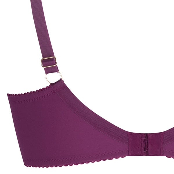 ワイヤー入りのフルカップブラ。脇が3つのパーツで補強されていて、より安定感が増しています。