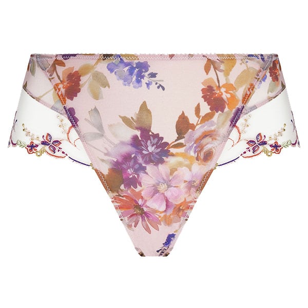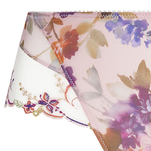 冬の初めの陽光につつまれた庭園の神秘的な美しさへ誘われて。7色の糸からなる花の刺しゅうは、軽やかなルレックス糸の反射で輝き、柔らかな水彩画のようなプリント生地では、シクラメンとパンジーがパウダーピンクの背景に温かく生き生きとした雰囲気を添え、喜びに満ちた祝祭の雰囲気を醸し出します。輝かしい冬にふさわしい、個性的でシックなルックを体現します。