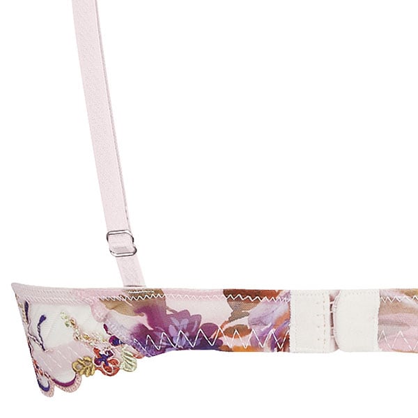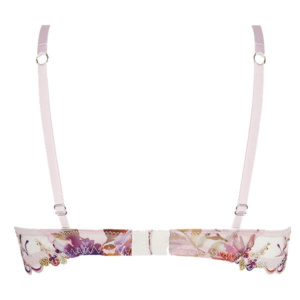 ワイヤー入りのパッドなし3/4カップブラ。商品画像はBカップ。D,Eカップのベルトは補強のメッシュ裏地付き。