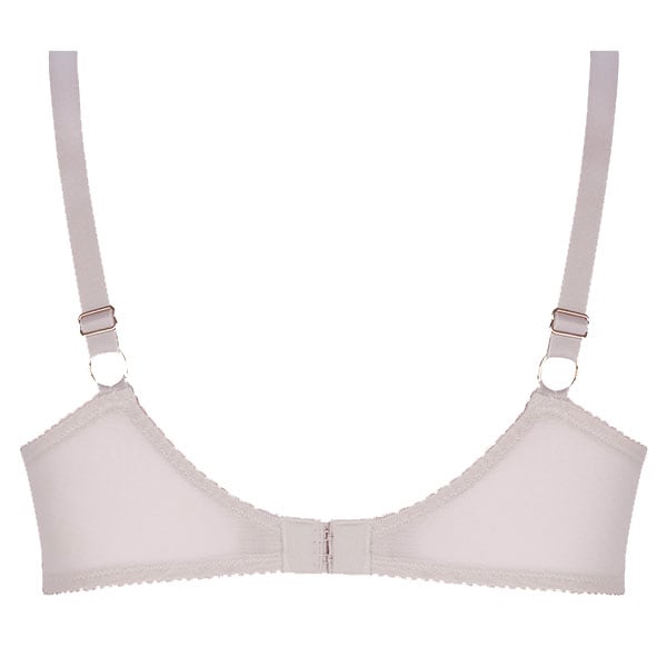 グラマーさん向けのワイヤー入りパッドなし3/4カップブラジャー。ベルトは補強のメッシュ裏地付き。画像はDカップ。