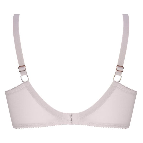 ワイヤー入りのフルカップブラ。脇が3つのパーツで補強されていて、しっかりフィット。優れたサポート力。ベルトは補強のメッシュ裏地付き。画像はDカップ。