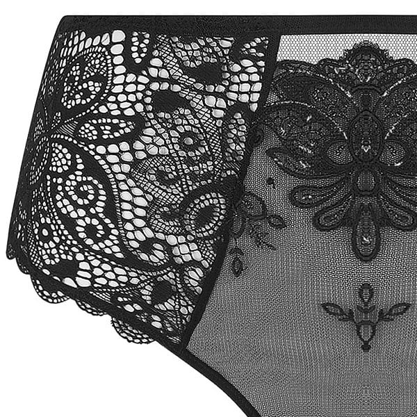 新たな誘惑の芸術、セクシーな魅力。洗練された独創的で華やかなデザインが、 まばゆいばかりの輝きを放ち、私たちを魅了します。ブラックにシルバーのルレックス糸で装飾された曲線と丸みを帯びたイタリア刺しゅうは、コンテンポラリージュエリーの軽やかさを彷彿とさせます。レースにはマイクロスパンコールがあしらわれ、繊細できらめくタッチに目を奪われます。ラグジュアリーなムードで、極めてセクシーなランジェリーをお楽しみください。