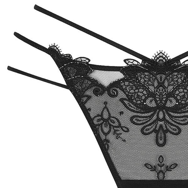 新たな誘惑の芸術、セクシーな魅力。洗練された独創的で華やかなデザインが、 まばゆいばかりの輝きを放ち、私たちを魅了します。ブラックにシルバーのルレックス糸で装飾された曲線と丸みを帯びたイタリア刺しゅうは、コンテンポラリージュエリーの軽やかさを彷彿とさせます。レースにはマイクロスパンコールがあしらわれ、繊細できらめくタッチに目を奪われます。ラグジュアリーなムードで、極めてセクシーなランジェリーをお楽しみください。