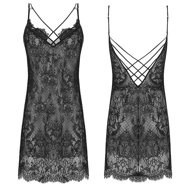 スリップ。ソフトなチュールで裏打ちされたレース。繊細な輝きを与えるマイクロスパンコールがあしらわれています。 バックスタイルは、サテンの伸縮リボンのクロスデザインが印象的。肩紐は調節可能。モデル着用のボトムは商品に含まれません(ACJ0075 タンガ)。