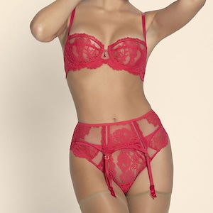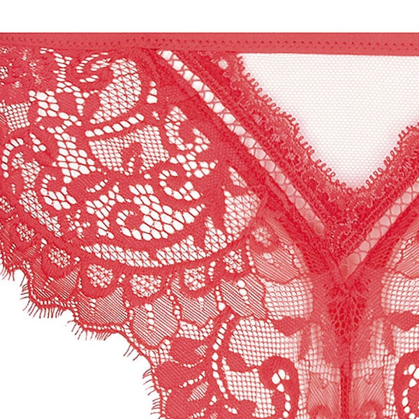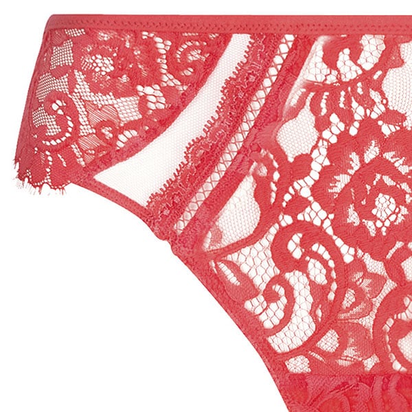 イタリアのクチュール・レースで官能的に肌を露わにするセクシーなライン。様式化された葉とバラのグラフィックには大きなアラベスクがあしらわれており、荘厳な透かし彫りのカーブ、繊細な陰影のある花々がボディを軽やかに彩ります。身に着けると自信と輝きを感じられる、 まさに魔法の力です。