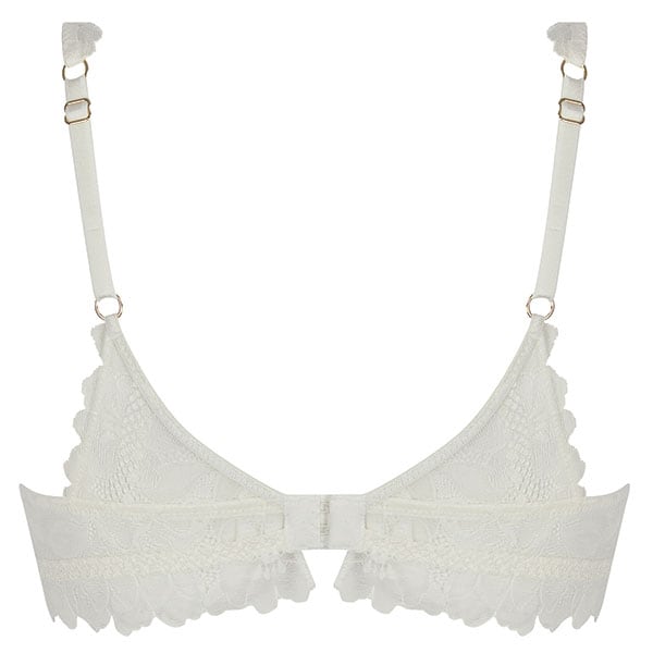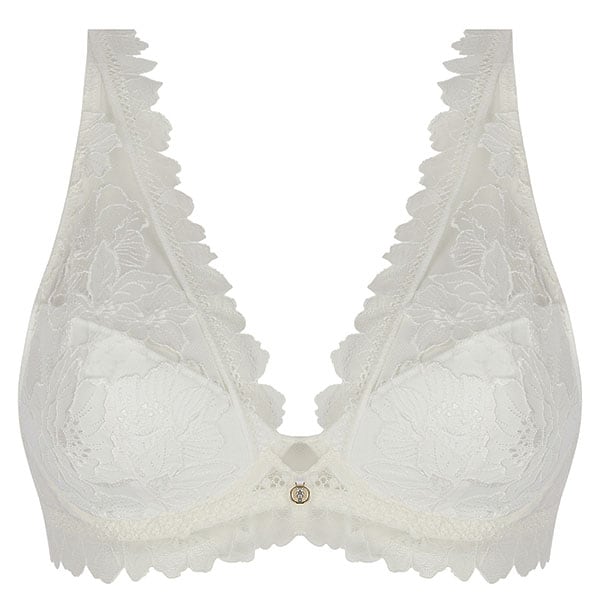 リズシャルメルが自由で独自のビジョンで表現するロマンティック。オーガンザをちりばめたカメリアの花の刺しゅうと同じモチーフのレースを組み合わせ、軽やかで洗練された透明感を表現しています。透かし彫りのレースは肌を美しく見せ、流れるようなカットが彫刻のようなエレガンスを描き出します。ロマンティックな柔らかさと輝くモダンさを兼ね備えた、新しいフェミニンなシルエットを堪能できるラインです。
