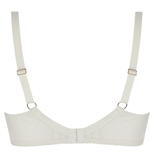 ワイヤー入りのフルカップブラ。脇が3つのパーツで補強されていて、より安定感が増しています。画像はDカップ。
