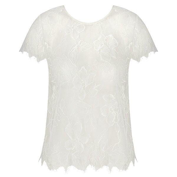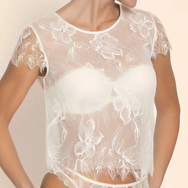総レーストップス。身頃はチュールの裏地付き。肩を華奢に覆う短めの袖。インナーのブラは商品に含まれません(ACJ5682B,C,D)。