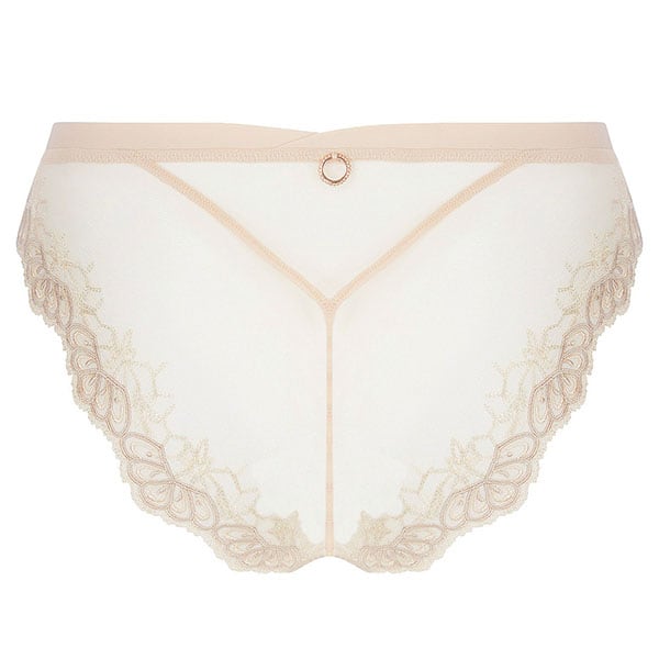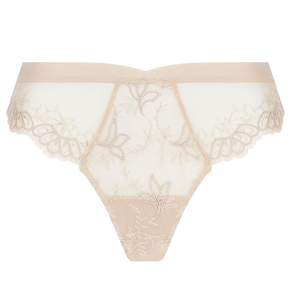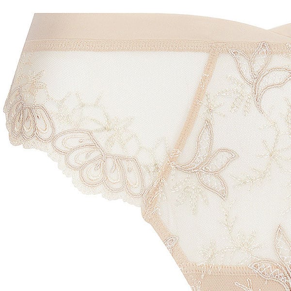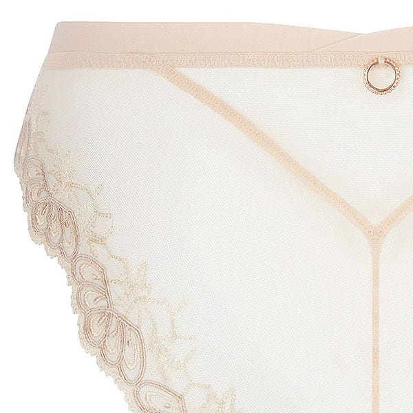 伝統的な職人技とモダンなフォルムを融合させ、柔らかさと心地よさ、そこにロマンティックなスピリットをも体現しています。柔らかなヌードとパールカラーの 2つの異なる糸からなるイタリア製のマルチスレッド刺しゅうが官能的で繊細な美しさをより一層 際立たせ、エレガントで洗練されたシルエットがしなやかな女性の美しさを輝かせます。イタリア製のシルクサテンを用いたランジェリーは、体の動きに寄り添い快適な着心地をもたらします。