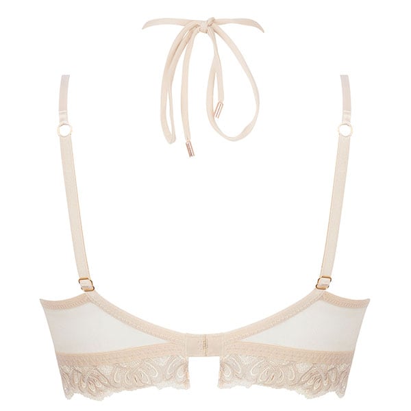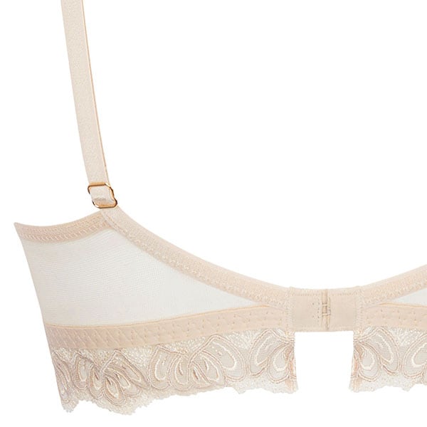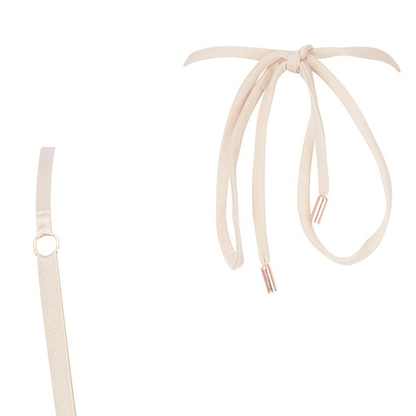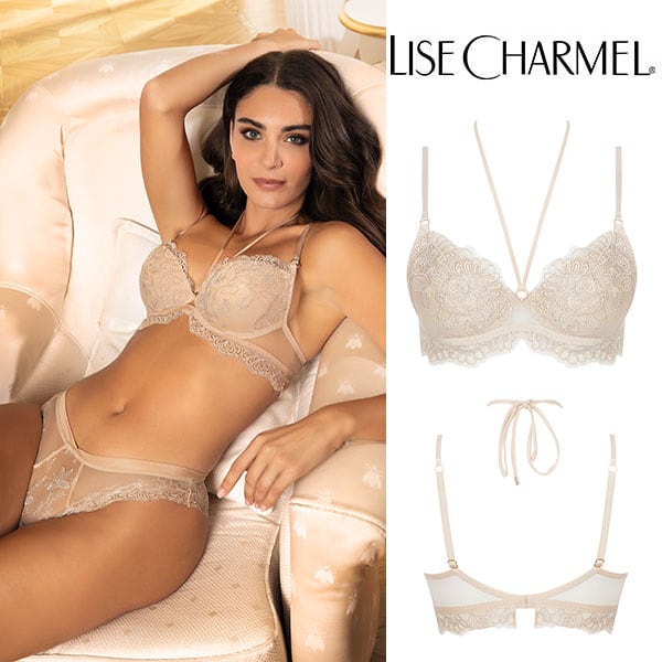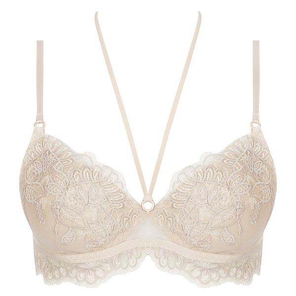 伝統的な職人技とモダンなフォルムを融合させ、柔らかさと心地よさ、そこにロマンティックなスピリットをも体現しています。柔らかなヌードとパールカラーの 2つの異なる糸からなるイタリア製のマルチスレッド刺しゅうが官能的で繊細な美しさをより一層 際立たせ、エレガントで洗練されたシルエットがしなやかな女性の美しさを輝かせます。イタリア製のシルクサテンを用いたランジェリーは、体の動きに寄り添い快適な着心地をもたらします。