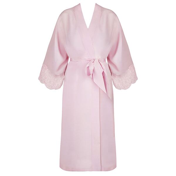 ガウン。シルク混生地にリバーレース。ウエストベルト付き。