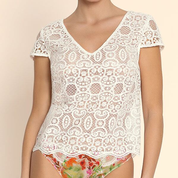 私たちが誘われるのは、魅惑的な香りの蘭が咲き誇る、豊かな自然が息づく南の海。パールの軽やかなベースに喜びに満ちた色彩の豊かさを合わせて、他に類を見ないエレガンスを表現。夏の光に包まれたトロピカルな風景のプリントチュールに、6色からなる繊細なイタリア刺しゅうの組み合わせ。きらめく糸で刺しゅうされた葉や蘭がさりげない輝きを添え、葉の曲線がリズミカルな流れを描き、プリントの透明感が優しい官能性を呼び起こします。官能的で繊細なスタイルで、夏の花の詩情を余すところなく表現しています。