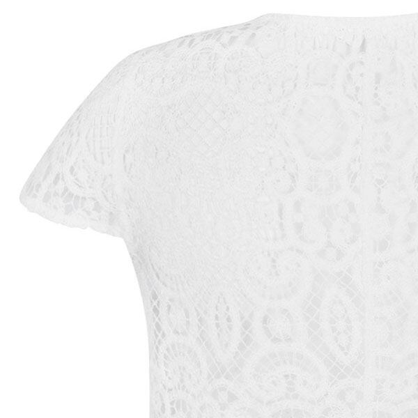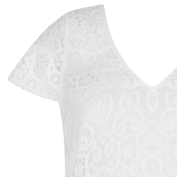 Vネックのレーストップス。キャップスリーブ。スカラップの裾。